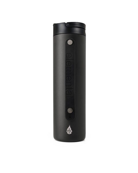 Elemental stainless steel Silicone-strap water bottle - 20 oz. Premium quality 20 oz (590 ml) insulated stainless steel elemental bottles are carefully crafted, BPA-free and food safe. Beverages can stay cold or hot for up to 24 hours. Keeps drinks at the perfect temperature longer. Sport lid comes with 2 straws each. Includes silicone strap handle for on-the-go use.